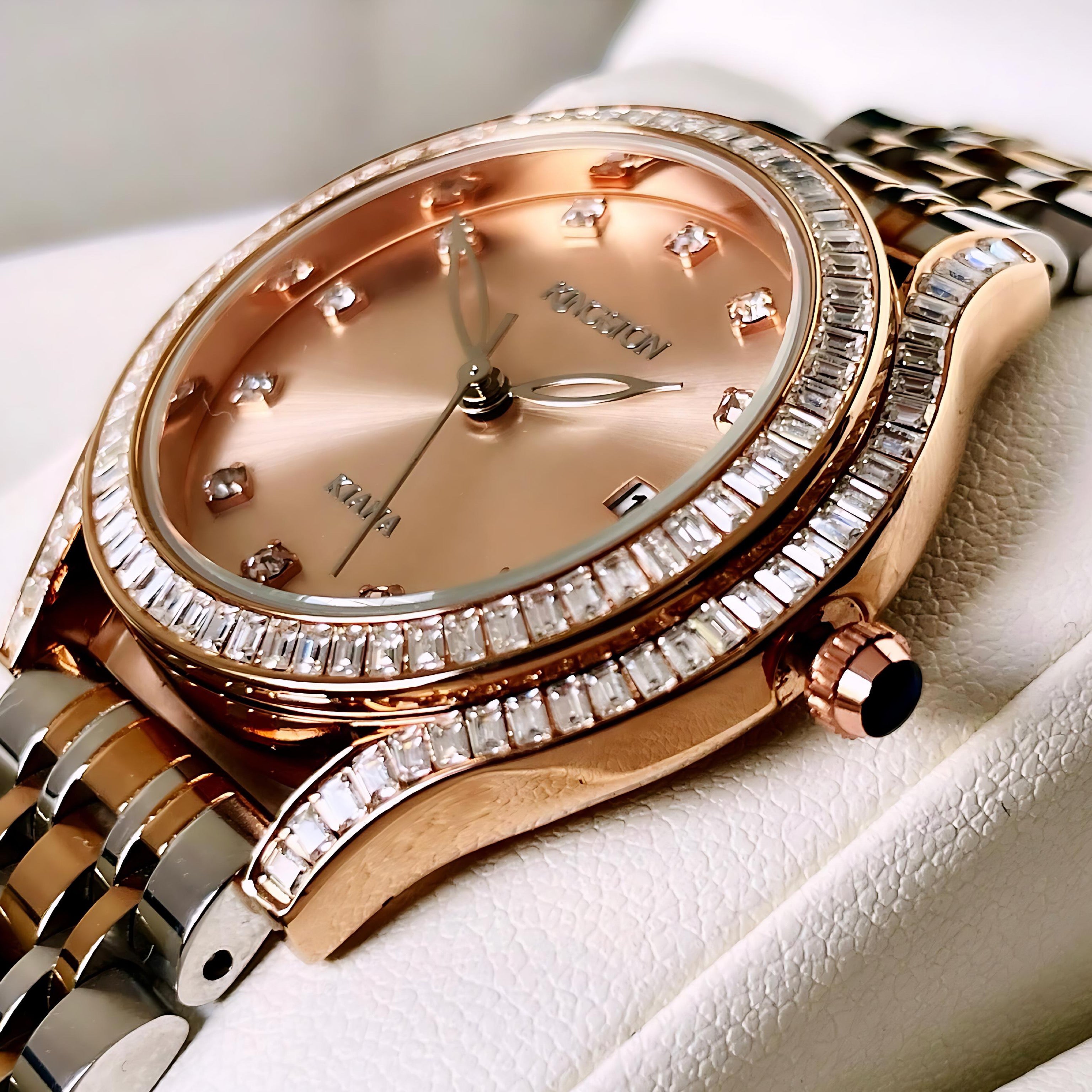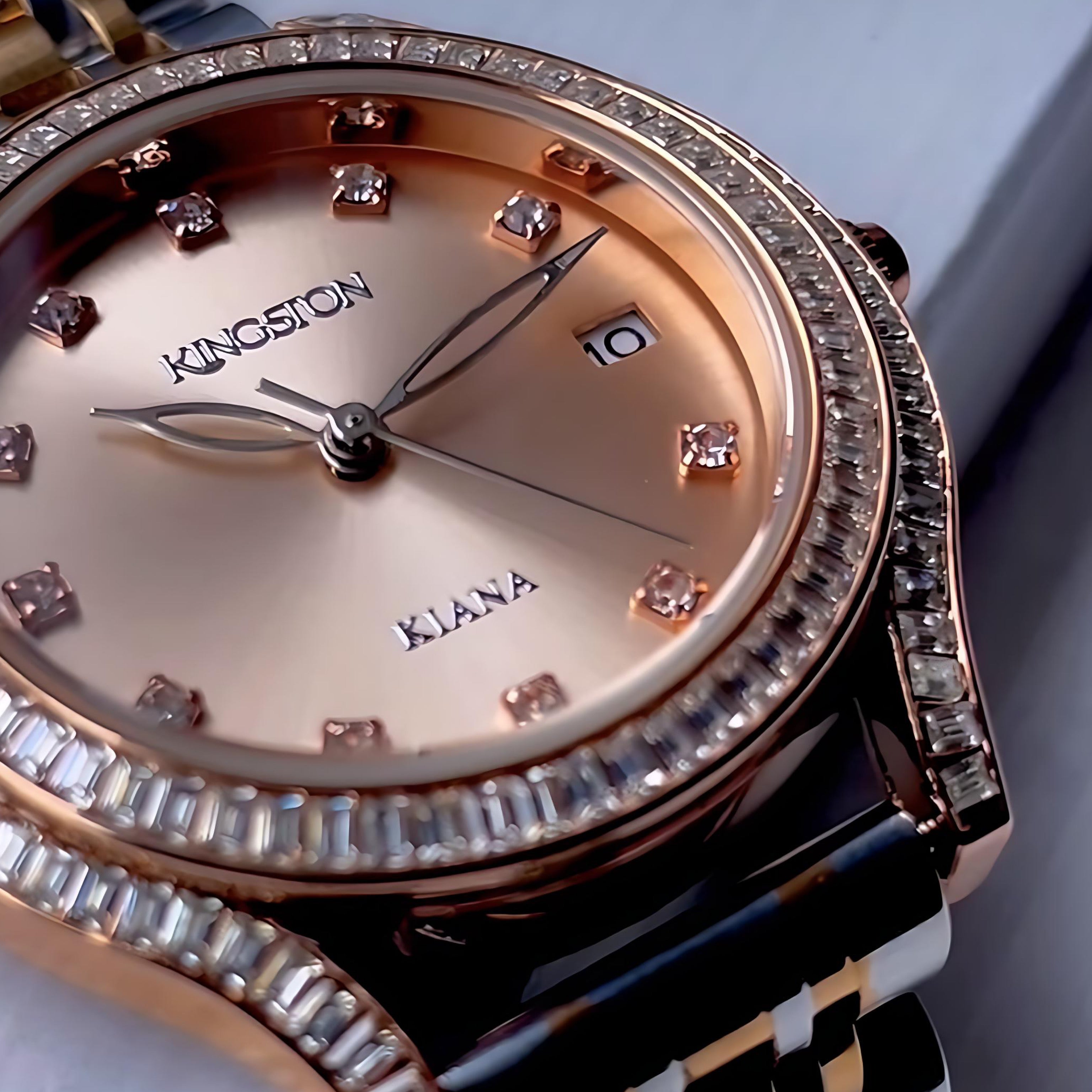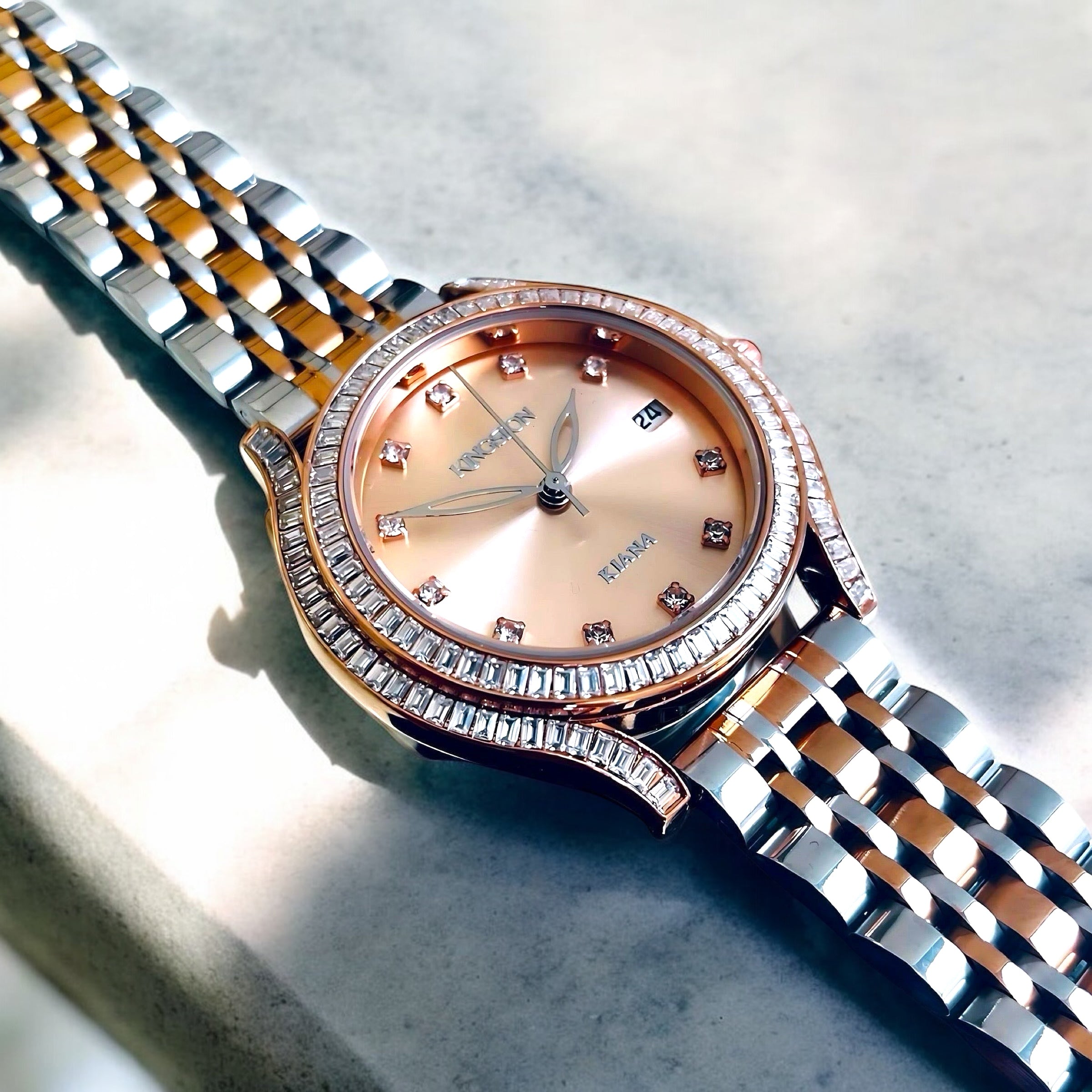 Introducing the Kiana Rose Collection – where timeless elegance meets modern sophistication. Our meticulously crafted timepiece, sized at a refined 36mm, seamlessly combines exquisite design with durability. The Kiana Rose features unscratchable sapphire crystal glass, ensuring clarity and resilience for every moment. The harmonious blend of rose gold and silver stainless steel band adds a touch of glamour, while the precision of Japanese movement guarantees accurate and reliable timekeeping. Elevate your style with the Kiana Rose – a symbol of grace and sophistication that transcends time.