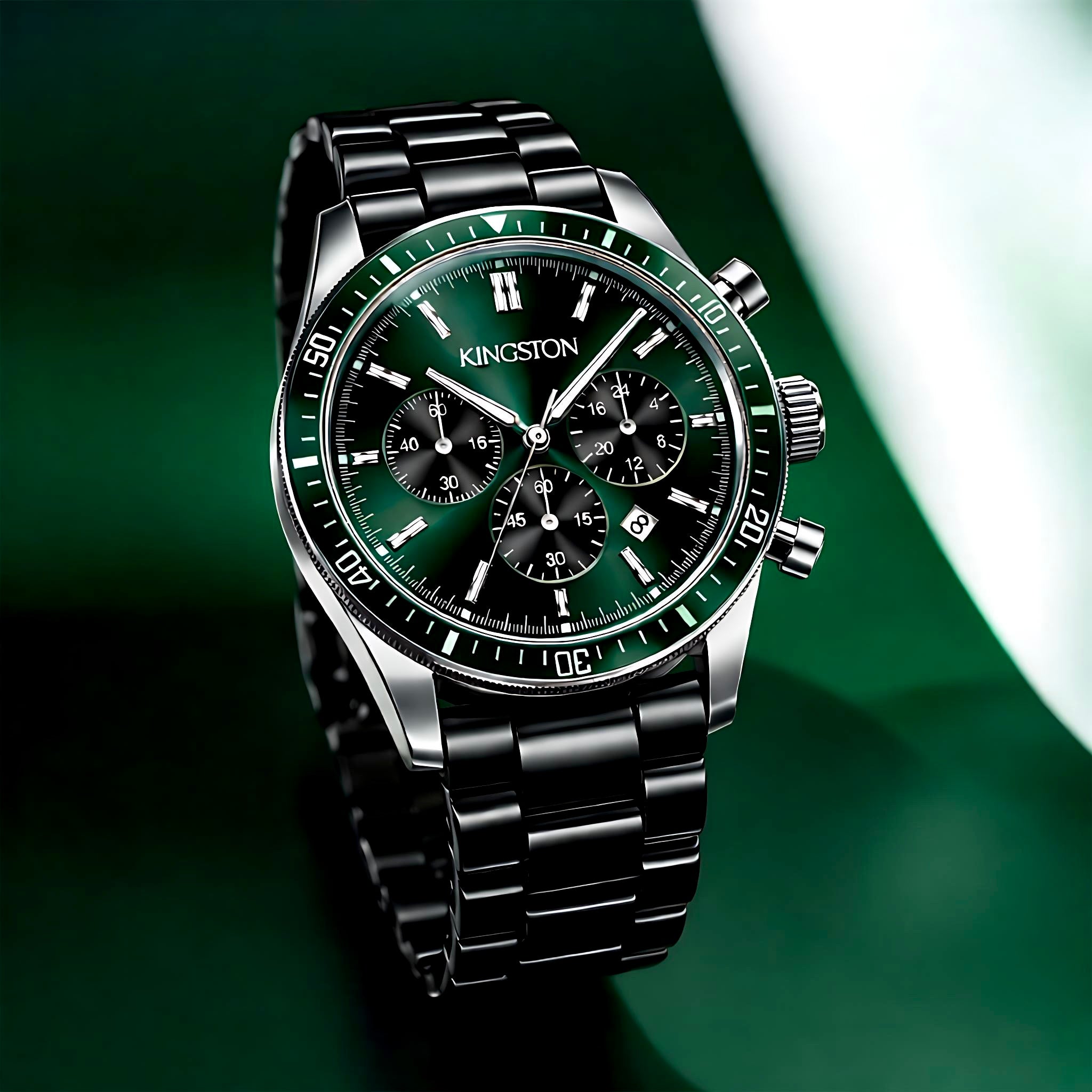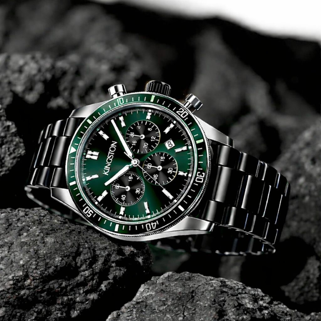 Introducing the Windsor Pine Collection - a statement of refined green elegance. The 42mm case, crafted from polished 316L stainless steel, pairs effortlessly with a rich deep-green dial. Silver hands glide across the face, enhancing the watch’s sophisticated character. Finished with a sleek black steel bracelet, Windsor Pine is designed to elevate any occasion. Powered by Japanese Miyota quartz movement, featuring chronograph functionality and water resistance up to 3 ATM, this timepiece delivers precision, performance, and timeless style.