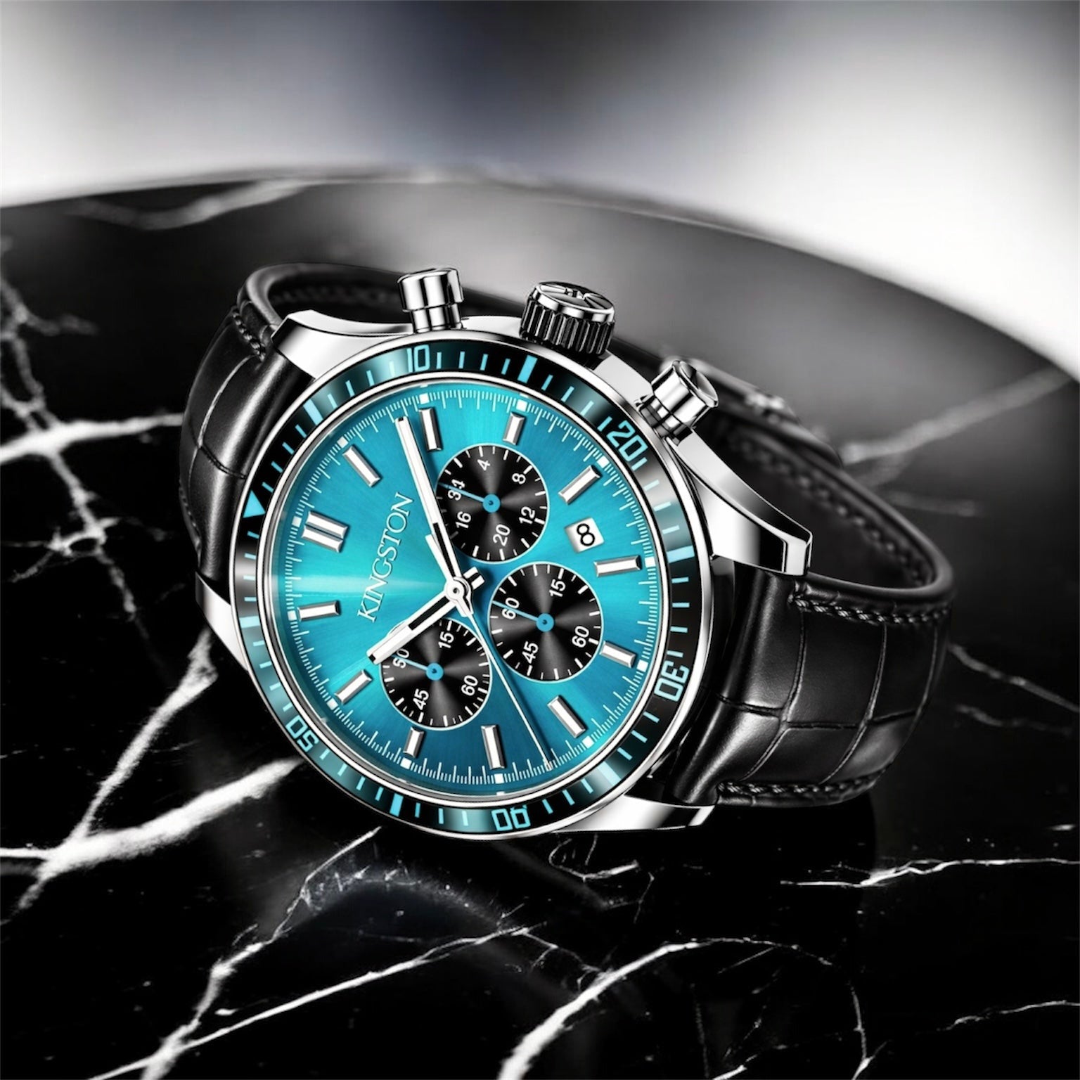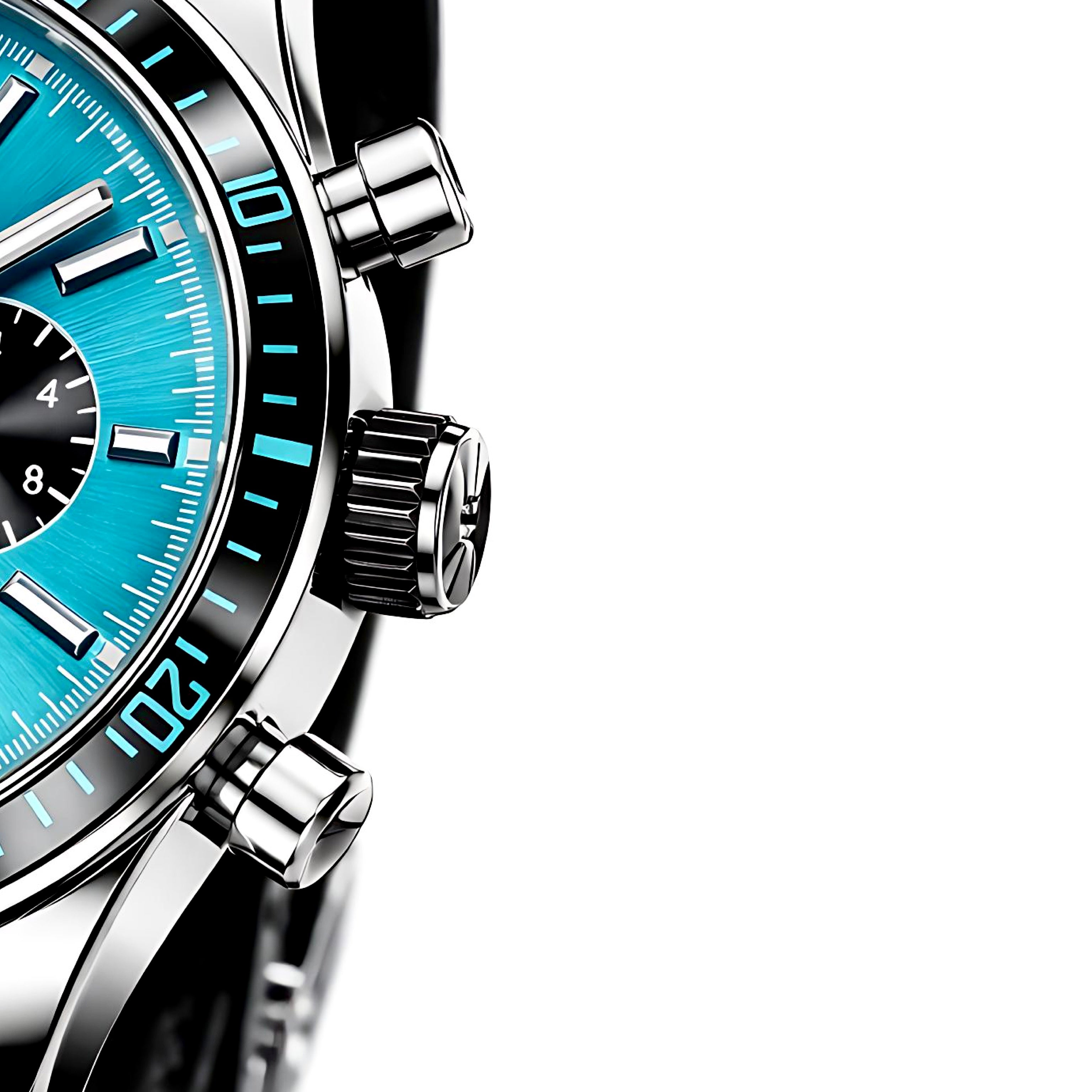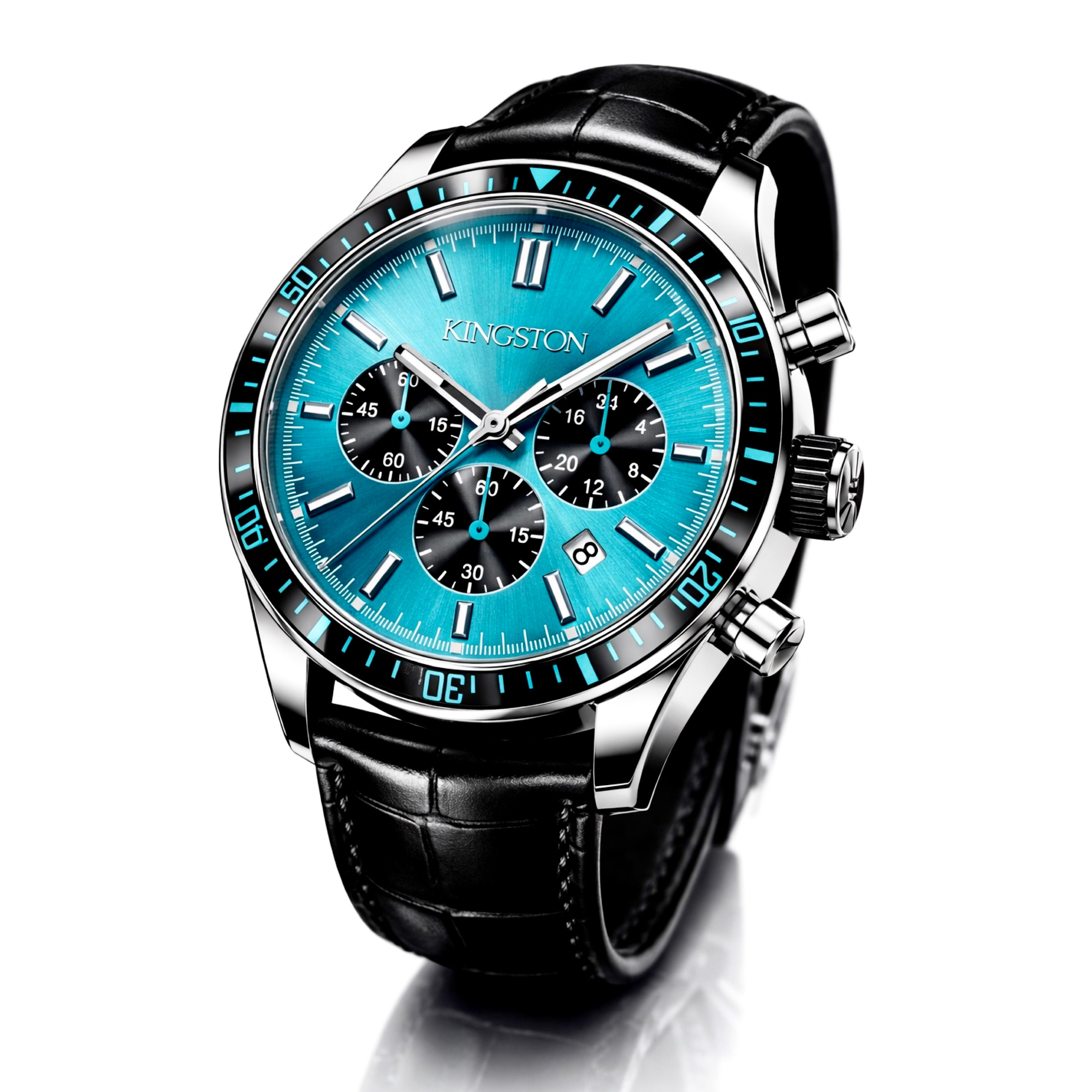 Introducing the Sorrento Turquoise Collection, where timeless design meets vibrant sophistication. A 42mm case in glossy silver 316L stainless steel frames a striking turquoise dial, beautifully accented by sleek silver hands. Finished with a premium Swiss leather strap, this piece exudes effortless refinement. Powered by a Japanese Miyota quartz movement with chronograph functionality and water resistance up to 3 ATM, Sorrento Turquoise delivers a perfect balance of style and precision for every occasion.